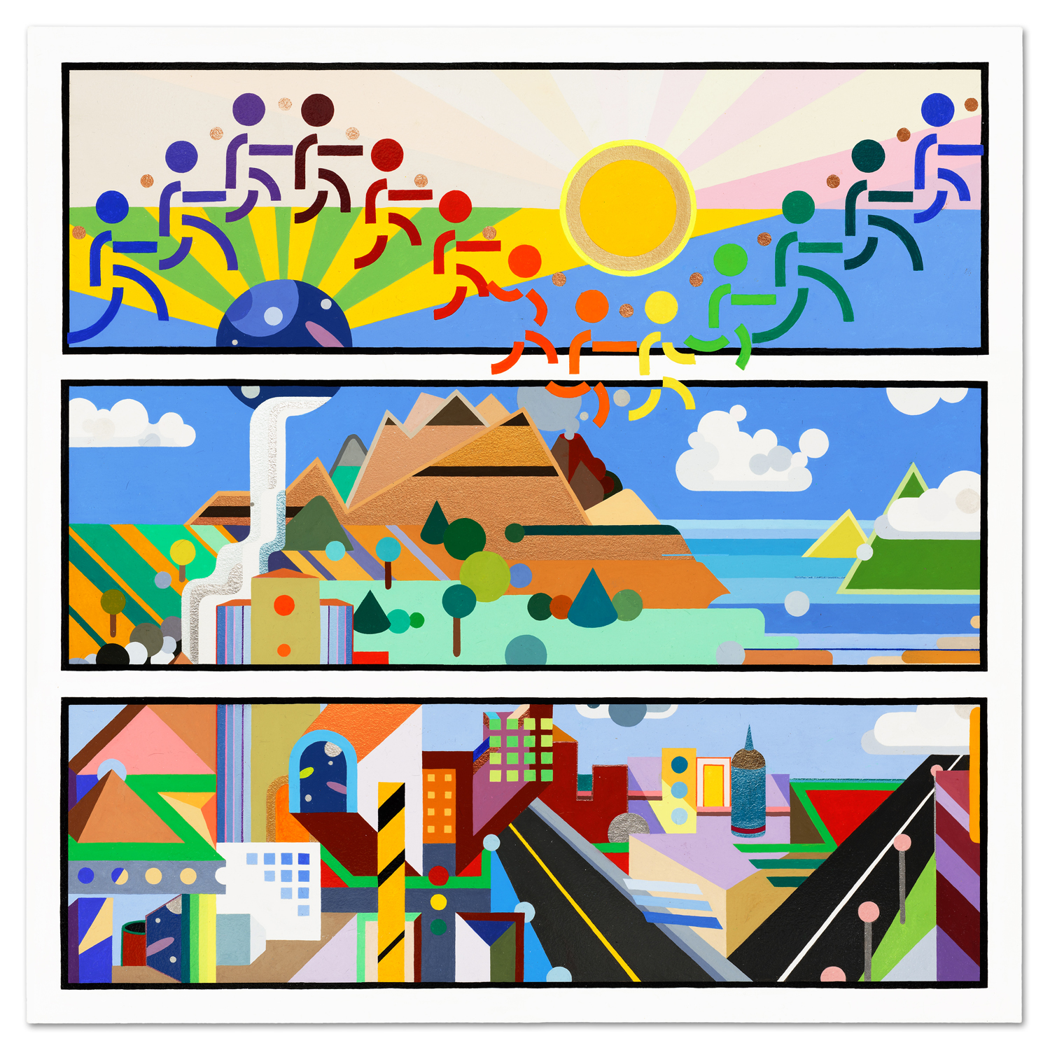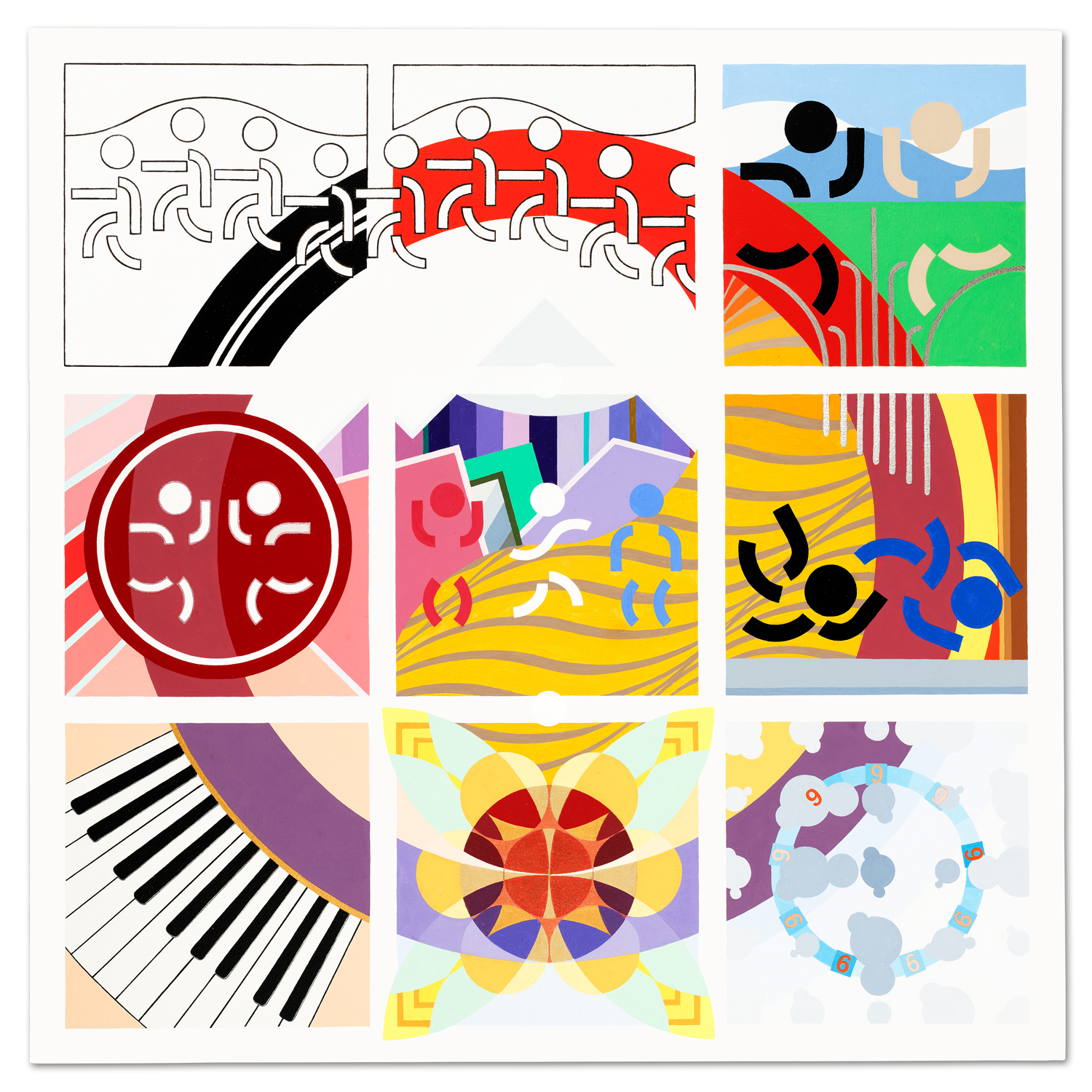These four pieces share the same basic structure: alternating groups of three verticals & three horizontals.